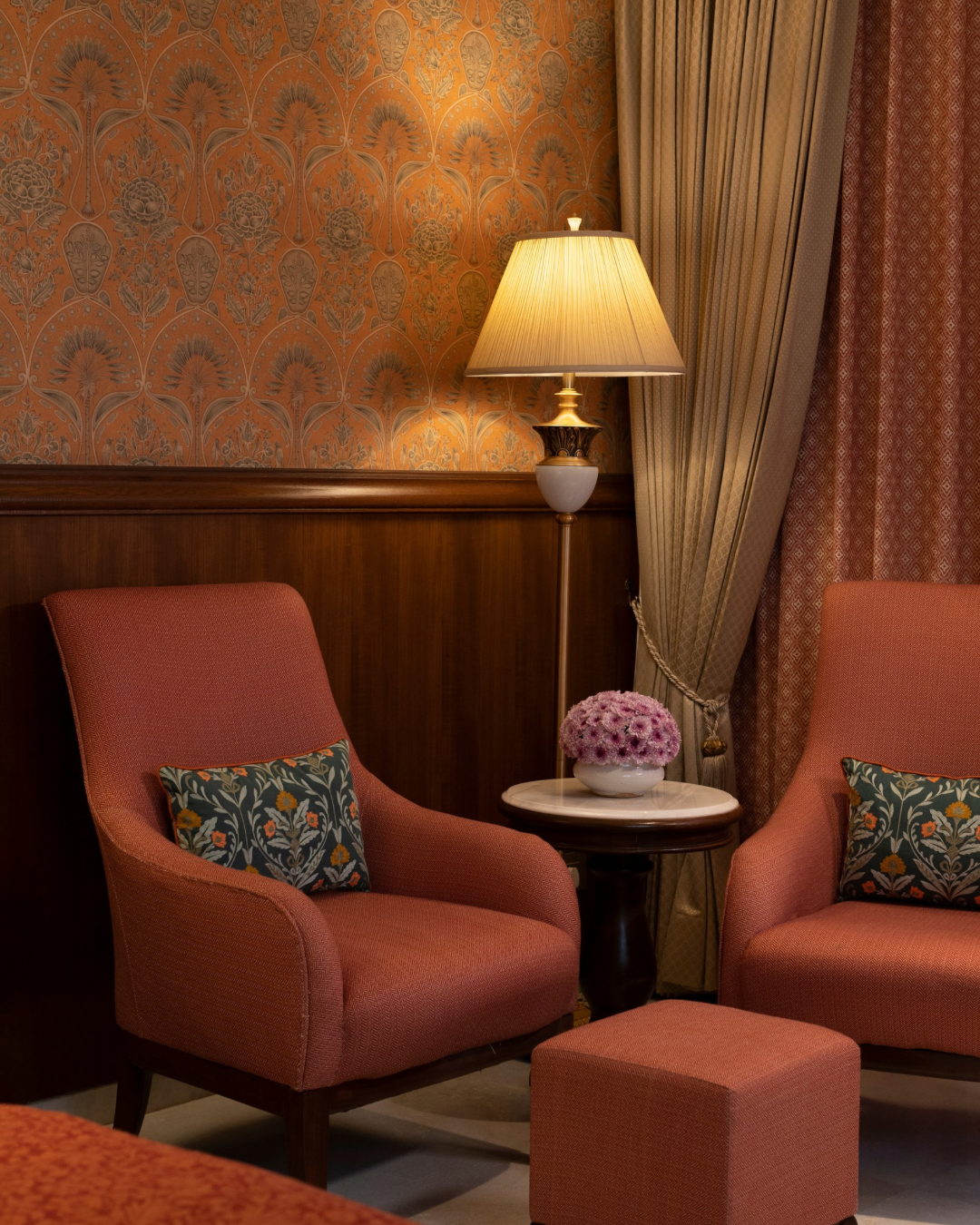 The guest rooms underwent a complete transformation with a refreshed color palette and richer textile layering, infusing vibrancy and warmth while maintaining the core intent of a palatial, heritage-inspired design. The result is an environment where history and modern comfort coexist gracefully, offering guests an experience that feels both authentic and renewed.
