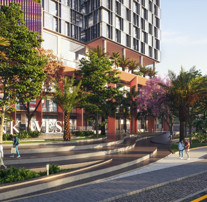 Its bold architectural identity—featuring a striking multi-coloured façade, expansive retail frontage, grand colonnades, and lush landscaped terraces—creates a fresh and iconic presence along the corridor. The retail podium is designed with double-height storefronts, generous walkways, and seamless circulation, hosting leading national and international brands for an elevated visitor experience. Rising above is a modern office tower with flexible floor plates, abundant natural light, and panoramic views tailored for new-age enterprises. Carefully planned pedestrian pathways, greenery, outdoor seating pockets, and efficient vehicular flow ensure a smooth and welcoming arrival. With its dynamic design and integrated functionality, Pink West blends commerce, lifestyle, and architecture—setting a new benchmark for Jaipur’s contemporary skyline.
