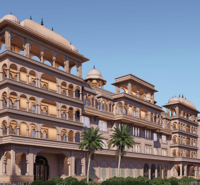 The resort is conceived as a curated journey, guiding guests through grand arrival courts, serene water features, lush courtyards, and intimate garden spaces into luxurious interiors. Thoughtfully planned to balance cultural richness with modern indulgence, it aims to deliver world-class hospitality, bespoke wellness, and memorable guest experiences. Positioned as a premier destination for leisure, weddings, and cultural retreats, the resort embodies the essence of Jaipur—its heritage, craftsmanship, and enduring elegance.