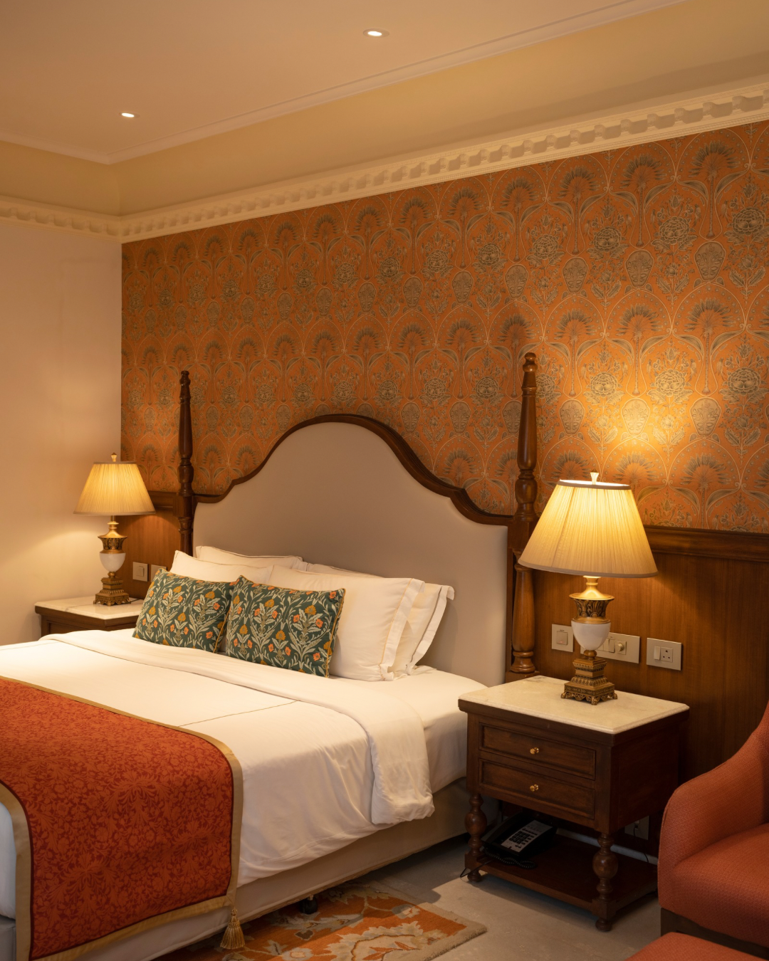 The guest rooms underwent a complete transformation with a refreshed color palette and richer textile layering, infusing vibrancy and warmth while maintaining the core intent of a palatial, heritage-inspired design. The result is an environment where history and modern comfort coexist gracefully, offering guests an experience that feels both authentic and renewed.