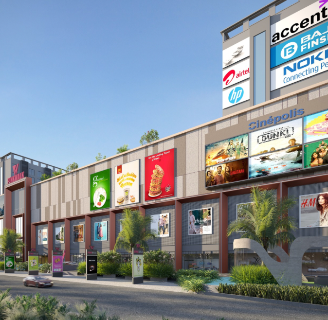 This luxury mall is envisioned as a contemporary retail landmark that blends bold architectural design with curated brand experiences. Its striking façade—marked by clean vertical lines, textured surfaces, and illuminated edges—creates a strong and memorable visual identity. Designed with precision and balanced proportions, the development sets a new benchmark for modern retail in Jaipur. It reflects a commitment to luxury, innovation, and an elevated urban experience.